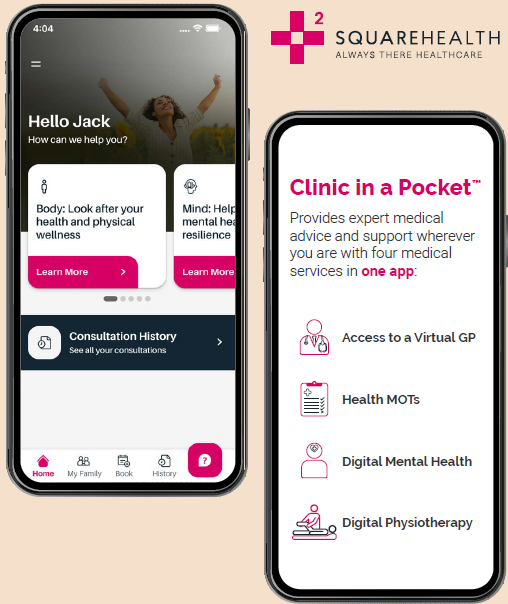 • Digital GP - Clinical advice, private prescription, sick note, recommendation for further treatment, wellness advice (when required). 6 consultations per annum for policyholder, their spouse / partner and children.